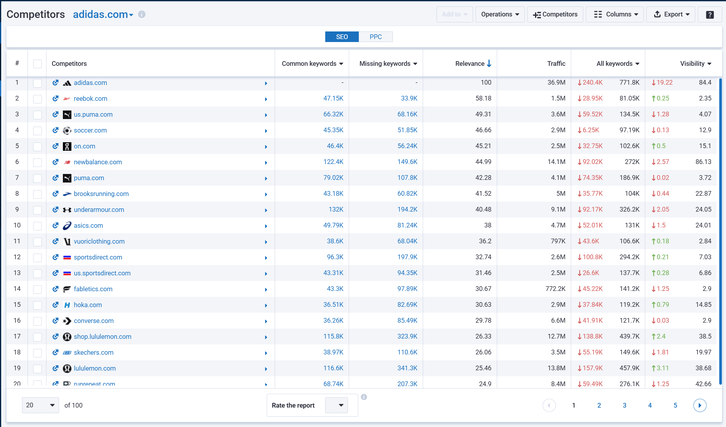 - Overall organic visibility relative to competitors