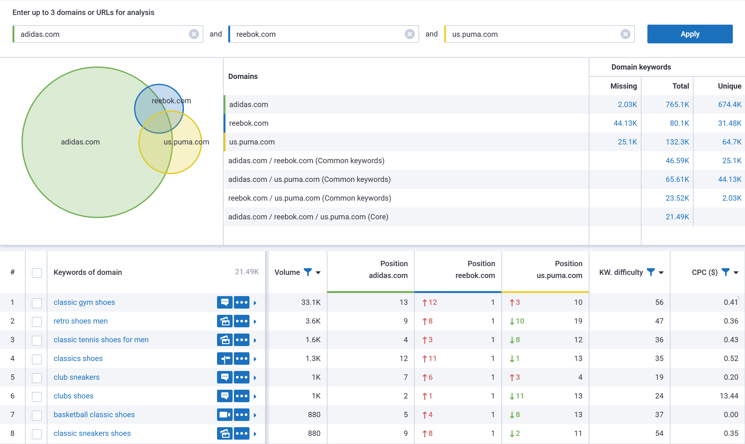- Discover domains ranking for the same keyword sets